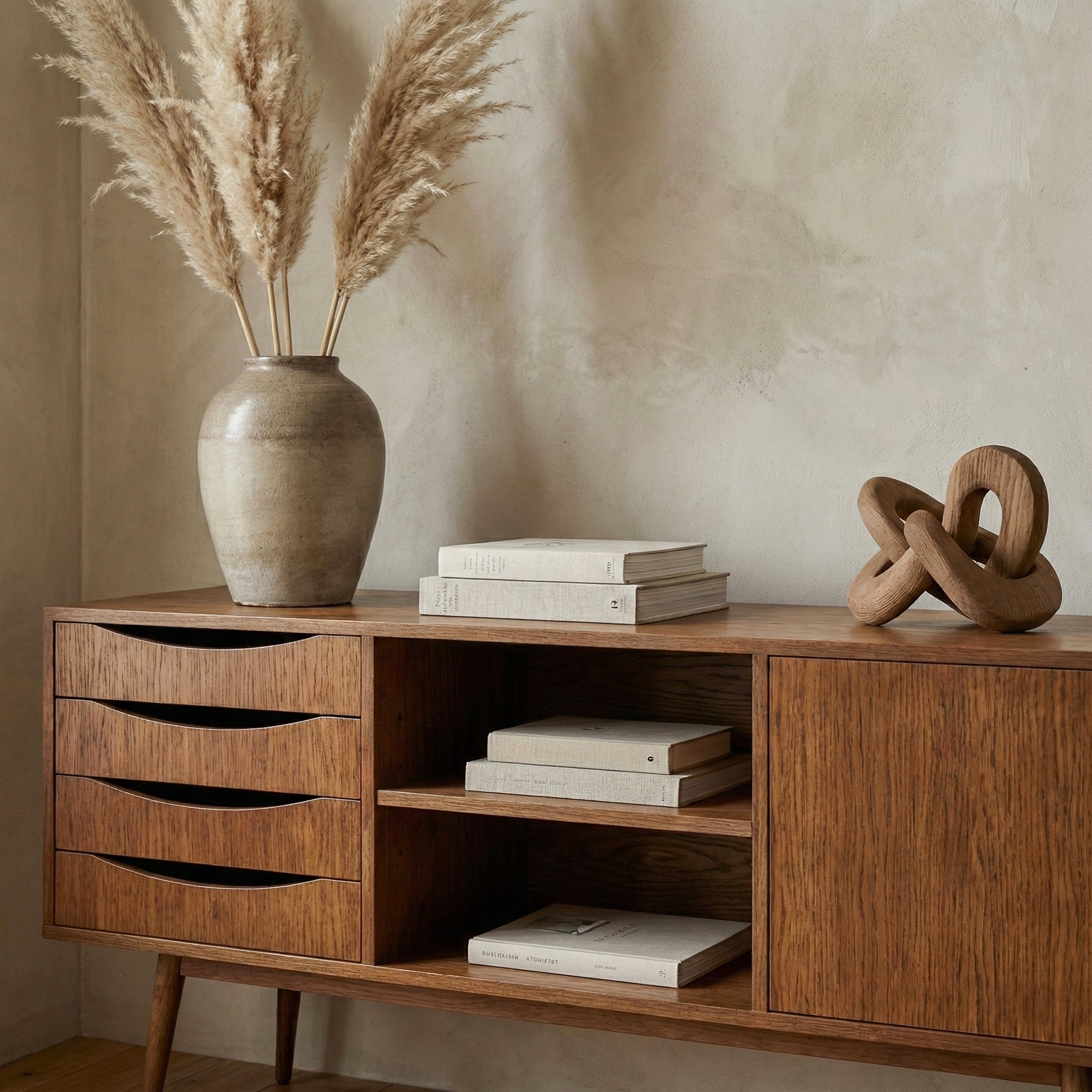 In unseren Möbeln findest du kein Gramm MDF oder Spanplatte. Wir fertigen aus echten Materialien – Massivholz und Furnier.